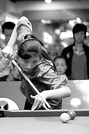 21歲的付小芳剛接觸臺(tái)球就是玩的16彩。從2002年開始在佳木斯叔叔開的球房里練球,叔叔就是她的啟蒙老師。付小芳于2004年到北京專門學(xué)習(xí)臺(tái)球。“我的目標(biāo)就是獲得世界冠軍。”她每天花在臺(tái)球上的時(shí)間不會(huì)少于八九個(gè)小時(shí)。從2005年開始,付小芳就陸續(xù)奪得過一些全國冠軍。到2006年,付小芳在全國的知名度已經(jīng)很高。