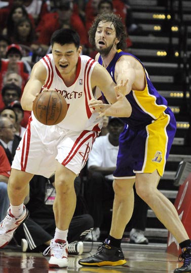 中新網(wǎng)5月9日電 在今天中午結(jié)束的一場NBA季后賽西部半決賽中,休斯敦火箭隊(duì)坐鎮(zhèn)主場迎戰(zhàn)湖人,最終火箭以94-108不敵對手,總比分被反超為1-2。姚明交出了19分、14個(gè)籃板的成績單。