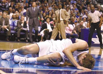 諾維茨基是在昨天比賽第三節(jié)還剩下3分25秒時受傷的,當時他在拼搶中左腳踝與膝蓋受傷,諾天王最少需要休養(yǎng)兩周,這意味小牛隊的季后賽資格將受到影響。