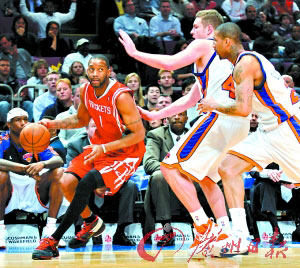 在麥迪遜廣場花園球館進行了一些常規(guī)的熱身訓(xùn)練后,姚明回到了球員席上,他在火箭客場對陣尼克斯的比賽中依舊是場邊看客。賽前姚明與火箭的球員發(fā)展主管布雷特·耿寧做了一會低位對抗練習(xí),以“試驗”他的膝蓋傷勢恢復(fù)狀況能否應(yīng)付比賽,結(jié)果還是不行。這是姚明連續(xù)第2場缺陣,但在離開球場以前,他說出了自己可能復(fù)出的時間,“費城吧!币γ鞅硎咀约嚎赡茉诋(dāng)?shù)貢r間本周三晚(北京時間周四)火箭對76人的比賽中出場。