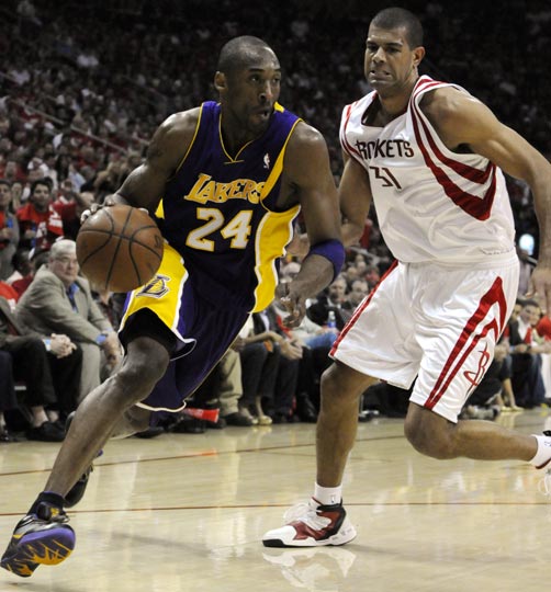 第二輪火箭面對的是西部頭號種子湖人,但休城球員們首戰(zhàn)就給了湖人一個下馬威:第四節(jié)火箭仍然緊緊地咬住比分,但距離末節(jié)還剩4分半時,科比在突破時左膝蓋頂?shù)搅艘γ鞯挠蚁ドw,撞得巨人倒在地上痛苦地打滾。但堅強(qiáng)的姚明在被隊醫(yī)架出場之后仍咬牙重返球場,并在上場后馬上投中關(guān)鍵一球,87-81!火箭再次壓住了陣腳。距離終場還剩兩分鐘時,火箭91-81領(lǐng)先10分。關(guān)鍵時刻,姚明接小布傳球施展夢幻舞步造費舍爾犯規(guī),再次成為火箭的英雄。最終火箭100-92取勝湖人,季后賽首場拿下一場酣暢淋漓的勝利。