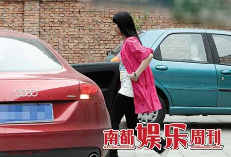 終于楊威有點(diǎn)不耐煩了,站起身來走進(jìn)了那排平房。記者發(fā)現(xiàn)在平房里有一家小型廣告公司,楊云好像在與該公司的工作人員用電腦制作一些材料。大約又過了20分鐘,楊威先出來啟動(dòng)汽車,楊云拿著一張光碟和一些文件跟著快步走了出來。記者看到楊云穿著一件寬大的白色T恤,腹部微微隆起,孕相明顯,估計(jì)已經(jīng)有三四個(gè)月的身孕了。別看有孕在身,但楊云膚色紅潤,步履輕快,不愧是運(yùn)動(dòng)員出身,20分鐘后楊威和楊云返回了公寓。