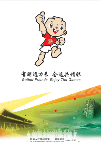 會徽形象宣傳畫下方畫面中表現(xiàn)了主會場的代表性建筑——“東荷西柳”的整體造型,并與大海的形態(tài)融為一體,通透疊加的顏色使用、最前方奔跑的人群,體現(xiàn)出此次運動會“和諧中國,全民全運”的主題。吉祥物形象宣傳畫的下方是孔廟和泰山的形象,與上方的泰山童子一起,準(zhǔn)確傳達(dá)出山東的地域特色,同時還體現(xiàn)了山東好客、熱情、誠邀四方嘉賓的氛圍。主宣傳畫著力表現(xiàn)會徽與吉祥物,其形式與十一運會整體視覺形象相一致。