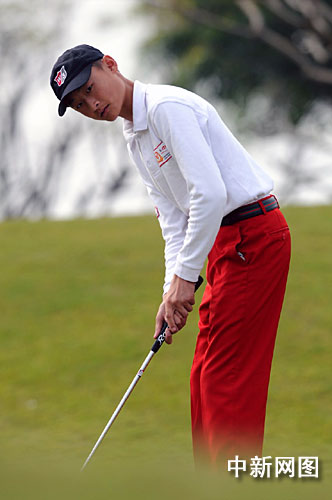 從美國紐約馬不停蹄地前來參賽的粱政不負(fù)眾望,在23日凌晨1點鐘抵達(dá)金灣球場、9:35從10號洞出發(fā)、完全沒有時間調(diào)整時差的情況下,打出76桿,取得并列第5名。