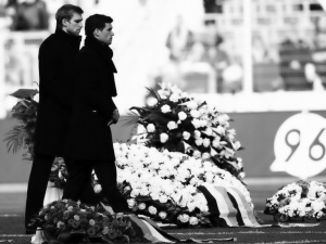 隨著德國(guó)隊(duì)隊(duì)長(zhǎng)巴拉克和默特薩克將一個(gè)花圈放在了恩克靈柩前,哀悼?jī)x式正式開始,天主教神父普羅辛格致詞,“羅伯特·恩克不僅僅是一位偶像,對(duì)許多人來說,他也是一位理想的楷模!睗h諾威96俱樂部主席金德作為第二位致詞人出場(chǎng),“羅伯特·恩克不會(huì)再回到這個(gè)球場(chǎng)了,我們的心情非常沉重。”