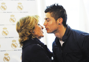 北京時間昨天是C羅的生日,他和皇馬主席弗洛倫蒂諾一起在伯納烏參加了一項新聞發(fā)布會;蜀R俱樂部與馬德里大區(qū)達(dá)成了合作協(xié)議,皇馬基金會將會投資幫助馬德里大區(qū)那些未成年人、外國移民等等。在新聞發(fā)布會現(xiàn)場,C羅和弗洛倫蒂諾開起了玩笑。皇馬主席問C羅“你現(xiàn)在多大了”,C羅回答“我20歲了”。弗洛倫蒂諾當(dāng)即揭穿了C羅的謊言:“你已經(jīng)25歲了,你竟然已經(jīng)這么老了!”當(dāng)然,這次玩笑以全場歡笑告終!∽鳛榛蜀R代表,C羅還與馬德里大區(qū)女主席阿吉雷進(jìn)行了親密接觸。盡管阿吉雷的年齡足以當(dāng)C羅的奶奶,但葡萄牙人還是跟她來了一個貼面熱吻。在被C羅熱吻之后,阿吉雷顯得非常高興,立刻說:“C羅是世界上最出色的球員,沒有之一。”同時阿吉雷也宣稱,“皇馬是歷史上最出色的足球俱樂部。”