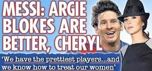 謝麗爾被認為是英國最漂亮性感的女人,而丈夫阿什利-科爾卻因為婚外“偷吃”辜負了她。對此梅西坦言:“也許謝麗爾現(xiàn)在有點恨英格蘭球員。如果她愿意在世界杯上尋求另一支球隊去支持,那么非阿根廷莫屬。我們能踢出世界上最漂亮的足球,我們有世界上最英俊的球員,而且阿根廷的男人知道善待他們的女人!