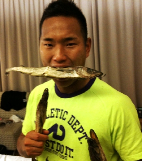 中新網(wǎng)6月19日電 在和巴西隊(duì)的比賽中表現(xiàn)出色的朝鮮國家隊(duì)隊(duì)員鄭大世在博客中上傳了“明太魚照片”,引起了人們的熱議。韓國《中央日報》報道稱,他在博客中公開了自己咬著明太魚的滑稽照片。他說:“明太魚是朝鮮國家隊(duì)隊(duì)員們喜歡的零食,我也很喜歡!