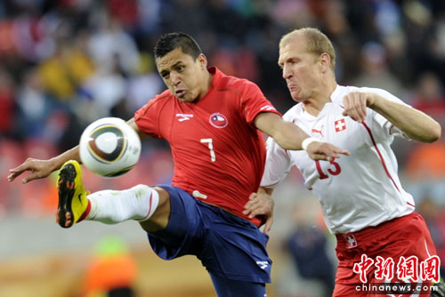 中新網(wǎng)6月21日電 北京時(shí)間今晚,世界杯H組第2輪首戰(zhàn)在伊麗莎白港納爾遜-曼德拉灣球場展開較量。瑞士中場貝赫拉米連續(xù)肘擊兩人,被紅牌罰下后,以十人應(yīng)戰(zhàn)的他們在下半場被智利隊(duì)岡薩雷斯打入一球,以0-1告負(fù)。