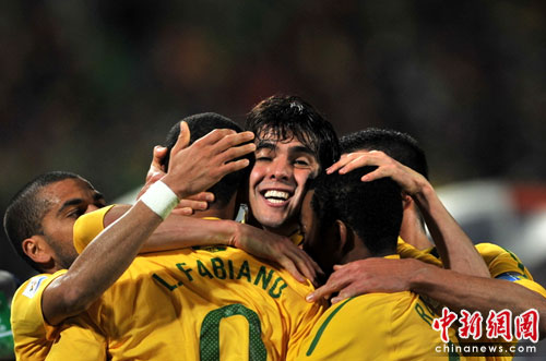 中新網(wǎng)6月29日電 今天凌晨2:30,南非世界杯1/8決賽再戰(zhàn)一場。奪冠熱門巴西隊在約翰內(nèi)斯埃利斯公園球場迎來了南美兄弟智利隊。最終憑借胡安和法比亞諾的在上半場的進(jìn)球、羅比尼奧下半場錦上添花,巴西隊以3-0淘汰智利,晉級八強(qiáng)。