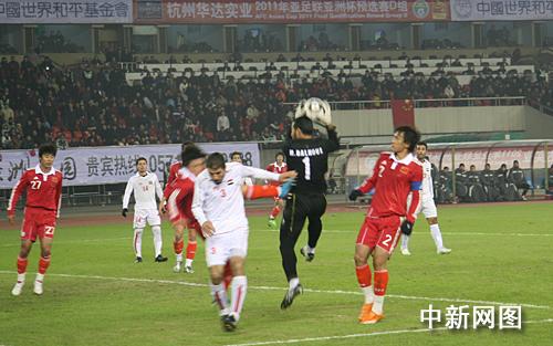 中新網(wǎng)1月7日電 昨日傍晚,2011年卡塔爾第15屆亞洲杯預(yù)選賽D組第5輪的首場(chǎng)比賽在杭州市黃龍?bào)w育場(chǎng)進(jìn)行,由中國(guó)隊(duì)主場(chǎng)迎戰(zhàn)敘利亞隊(duì)。經(jīng)過(guò)90分鐘的激戰(zhàn),雙方以0比0互交白卷,攜手晉級(jí)。第40分鐘杜威前場(chǎng)送出直塞,邵佳一反越位單刀射門(mén),但浪費(fèi)了全場(chǎng)最好的一次機(jī)會(huì)。