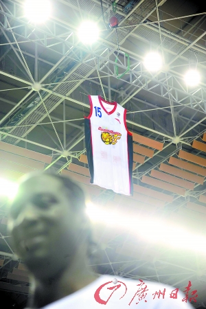 儀式開始前,積臣和宏遠(yuǎn)集團(tuán)公司董事長(zhǎng)一起拉下了遮簾,他的15號(hào)球衣在東莞體育館上空高高掛起,這是5冠王俱樂部第一件退役的球衣。