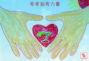 上周日,隊醫(yī)克蘭頓打電話告訴姚明傷情時,后者正在忙著作畫。缺席季后賽的消息并沒有影響到姚明的畫作。在這幅題為“有愛就有力量”的蠟筆畫中,兩只大手呵護著一顆紅色的愛心,里面有新芽生出。
