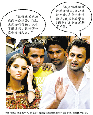4月5日,印度警方扣押了巴基斯坦板球明星馬利克的護(hù)照,印度警方稱馬利克迎娶米爾扎的舉動可能犯下了重婚罪。