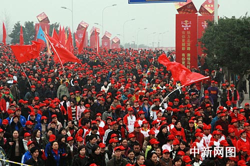 中新網(wǎng)重慶1月30日電 (孟幻)為掀起山城市民的冬日健身熱情,重慶首個(gè)短程馬拉松比賽30日正式開跑,吸引了萬名長跑愛好者參與。