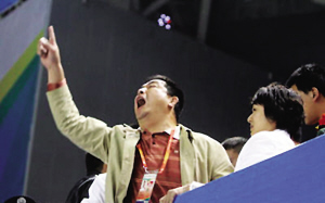 昨天的決賽來(lái)了大量的江蘇拉拉隊(duì),他們本想見(jiàn)證劉歡緣奪冠的激動(dòng)時(shí)刻?墒茄矍鞍l(fā)生的這一切讓他們不敢相信,甚至極度氣憤。裁判改判后,拉拉隊(duì)“黑哨”聲已經(jīng)響徹體育館。