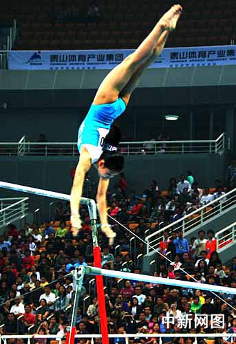 中新網(wǎng)濟(jì)南5月16日電(記者 胡洪林 王超)5月16日晚,山東省濟(jì)南奧體中心明星薈萃、人聲鼎沸,2009年全國(guó)體操錦標(biāo)賽進(jìn)行了前5個(gè)單項(xiàng)的決賽。在此經(jīng)過(guò)一番激烈的角逐,5枚金牌各得其所。“一姐”程菲毫無(wú)懸念?yuàn)Z得跳馬冠軍,江鈺源一洗昨日比賽失誤之不幸,行云流水般出色完成整套高低杠動(dòng)作,喜笑顏開(kāi)的捧走這一單項(xiàng)金牌。
