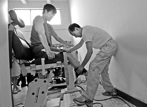 為了讓劉翔更好更快更均衡地恢復,孫海平費盡了心思。他昨天透露了他想出的幾個絕招,“從來沒有人使用過的!币皇菢鋬蓧K板,讓劉翔兩腳在上邊畫圈、點擊,這既可以讓劉翔傷腳得到力量和靈活性鍛煉,又可以讓雙腳更協(xié)調(diào);另一招是劉翔前些日子出現(xiàn)了單腳平衡性不好后想出來的,是讓劉翔站在沙坑里練單腳站立。