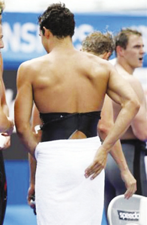 意大利時間昨天下午進行的男子4×100米自由泳接力預賽中,伯恩斯代表美國隊參加了第三棒比賽。當他出發(fā)起跳時,泳衣臀部裂開一條大口子,但敬業(yè)的伯恩斯仍舊堅持游完全程,上岸后尷尬的美國小伙子迅速用一條白色大毛巾遮住了走光的臀部。最終美國代表隊以3分11秒64、預賽第四名成績晉級決賽。