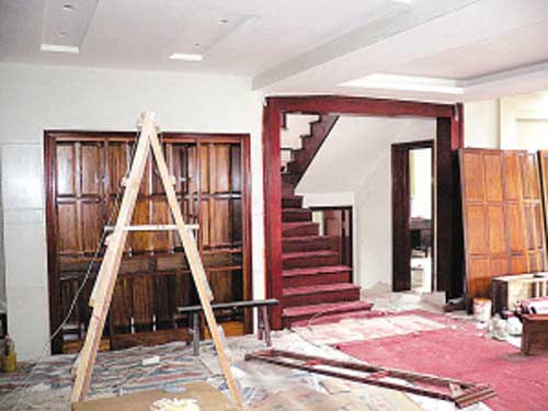 在丁俊暉的伯父丁龍君的帶領下,記者參觀了“江南春天”的內(nèi)部裝修。盡管屋子里仍堆放著一些尚未完成的家具,但整體裝修已經(jīng)初步完成。走進客廳,一張紅木的大圓桌映入眼簾。“這桌子全紅木的,光雕工就要3千多塊,”丁龍君一邊說一邊指著放在邊上尚未拼裝起來的三個大床,“這幾張床也是紅木的,我們請的宜興的師傅,雕工相當棒的,這件房子里,只要是木頭就都是紅木的,除了桌子椅子、床和衣櫥,二樓和三樓的博古架,我們連廚房的櫥柜也都用的紅木,包括家里的樓梯、房門和門套。”丁龍君告訴記者,丁俊暉的父親很喜歡紅木的家具,所以在裝修之前花了40多萬買了紅木的木料,家里的家居都是專門請師傅根據(jù)丁俊暉爸爸的要求打的,連工錢一起花了將近60萬。