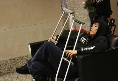 一襲黑衣,穿著鐵鞋,拄著鐵拐,劉翔在美國(guó)時(shí)間10日中午來(lái)到赫曼紀(jì)念醫(yī)院進(jìn)行首次復(fù)診。近一個(gè)小時(shí)的X光檢測(cè)和觀察,劉翔術(shù)后的情況也很直觀地反映了出來(lái)!盎謴(fù)非常理想,手術(shù)非常成功!边B續(xù)兩個(gè)“非!敝,師傅孫海平顯得相當(dāng)激動(dòng)。根據(jù)X光片顯示,劉翔跟腱部位與手術(shù)前相比非常光滑。此外劉翔開刀的2.5厘米創(chuàng)口也愈合得很好?巳R頓醫(yī)生對(duì)此也很滿意。
