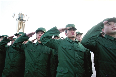 接受了4天的軍訓(xùn)后,國(guó)羽將士們昨天在天安門廣場(chǎng)展示了自己的訓(xùn)練成果——在寒風(fēng)中列隊(duì)觀看了升旗。