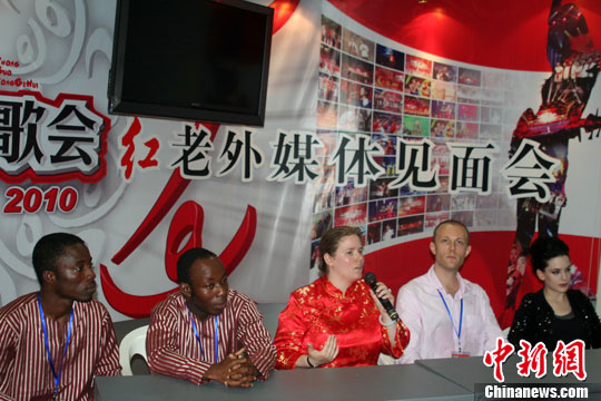 中新網(wǎng)南昌7月10日電(劉占昆)2010中國紅歌會突圍戰(zhàn)即將全面打響,10日下午,闖進全國120強選手中的五位老外率先亮相在媒體見面會上,他們不僅現(xiàn)場唱起紅歌,還相互調(diào)侃耍寶。