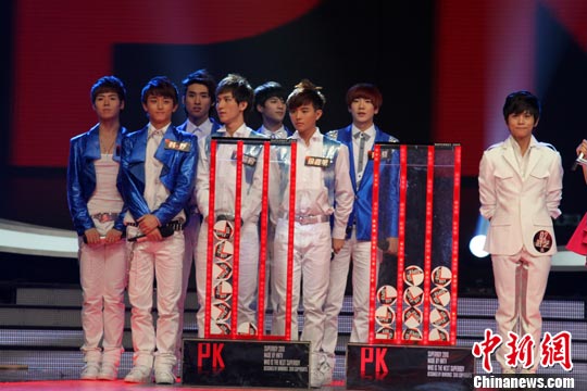 中新網長沙8月7日電(記者 鄧霞)8月6日晚,正式成軍的快樂天團8090組合空降快男舞臺,與快男七強進行踢館賽。經過兩輪激烈比拼,這支由中韓老師近兩個月魔鬼式專業(yè)打造的偶像組合剛登上舞臺就被“秒速”出局,讓人唏噓不已;而一直在努力克服神經性耳聾的陳翔,以“2010快男”總決賽最高分首奪周冠軍。
