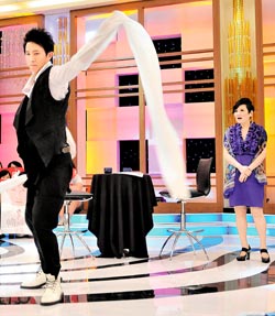 對于當場被夸講話溫柔,外表看不出強勢,更被懷疑從沒出口罵人,韓庚立馬否認說:“當然有!男孩子都罵過人!”現(xiàn)場張小燕更故意踩臟韓庚的白皮鞋,想逼他罵人,但是韓庚在大聲喊了幾聲后竟蹲下擦鞋,溫柔的說:“(鞋子)臟了!”讓張小燕相當失望。
