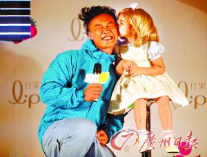 今明兩晚,陳奕迅將在廣州體育館接連上演兩場(chǎng)“90分的快活”演唱會(huì),昨天下午,他忙中偷閑為自己代言的某品牌什果冰潤(rùn)唇膏造勢(shì)。在宣傳活動(dòng)中,他還與產(chǎn)品廣告中的3歲金發(fā)小美女一起玩親親,惹得現(xiàn)場(chǎng)相機(jī)閃光不斷。