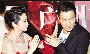 《狄仁杰之通天帝國(guó)》21日舉行廣州首映發(fā)布會(huì),主辦方為即將在27日過(guò)生日的劉德華準(zhǔn)備了一個(gè)生日蛋糕。大家在切蛋糕的時(shí)候,李冰冰不但舔粘有蛋糕的手指,還往劉德華臉上抹蛋糕。其后,李冰冰準(zhǔn)備幫劉德華擦去臉上蛋糕的時(shí)候,卻被劉德華拒絕推開(kāi)(如圖)。 小 魚(yú)