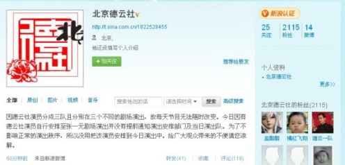 德云社在微博指出:“因德云社演員分成三隊且分別在三個不同的劇場演出,故每天節(jié)目無法隨時改變。今日因有德云社演員自行安排至張一元劇場演出并沒有提前通知演出安排部門及當日演出隊。為了不影響正常的演出秩序,所以沒用把該演員安排到今日演出中。”