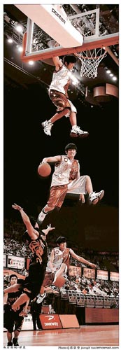 中新網(wǎng)12月13日電 周杰倫在電影《功夫灌籃》中化身灌籃高手,做出一連串空中翻騰動(dòng)作,特別是連環(huán)投6球動(dòng)作,拍攝時(shí)利用吊威亞及后期動(dòng)畫特效合制而成。成功練成“神投”的周董笑說:“我每周必須打兩次籃球,因球場離家大約兩公里,一般都是騎單車前往!