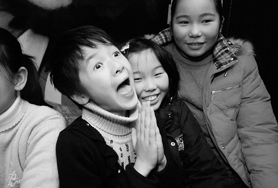 記者就坐在徐嬌一家三口前面一排,大銀幕上的徐嬌在那里哭在那里笑,看電影的徐嬌臉上是什么表情呢?記者回頭發(fā)現(xiàn),她看得十分認真,笑的時候一起笑,哭的時候卻不哭。她說,已經(jīng)看了很多遍了,都麻木了。要十歲的小朋友哭可不是件容易的事,有好幾場哭戲,演的時候都哭不出來,媽媽只能擰她,疼得她眼淚一下就下來了。