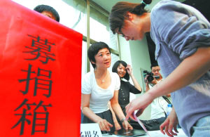 繼上海和廣州兩站義映后,賈樟柯攜新作《二十四城記》來到母校北京電影學(xué)院進(jìn)行了第三場(chǎng)放映,和主演趙濤一起再次為四城市義映活動(dòng)親力親為。本場(chǎng)放映共籌得善款超過3萬(wàn)元,人均68元。北京的觀眾對(duì)于這次義映也表現(xiàn)出了極大的熱情,除了之前預(yù)訂的300席之外,現(xiàn)場(chǎng)買票的觀眾也多達(dá)近200人,不少觀眾更是提前兩個(gè)多小時(shí)便來到現(xiàn)場(chǎng),其中有五位觀眾在每人捐出100元購(gòu)買電影票之后,又再次各自掏出500元,表示支持本次義映活動(dòng),愿意為災(zāi)區(qū)文化設(shè)施重建獻(xiàn)出愛心;一位最早到達(dá)的觀眾還主動(dòng)提出在現(xiàn)場(chǎng)擔(dān)任義務(wù)售票員的工作;而不少恰巧路過的行人在了解本次義映活動(dòng)的情況之后,更是立刻買票表示支持。觀眾的熱情令劇組和本報(bào)工作人員十分感動(dòng),在影片放映前,賈樟柯站在臺(tái)上向四百多位觀眾深深鞠躬,表達(dá)對(duì)大家的謝意。