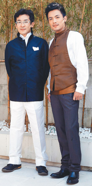 “海角七號”導演魏德圣(左)與男主角范逸臣為金馬試裝。