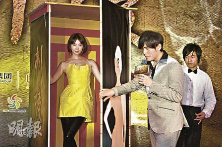 據(jù)香港《明報(bào)》報(bào)道,周杰倫在記者會(huì)上化身魔術(shù)師,變出女主角林志玲。有質(zhì)疑林志玲比周杰倫高,穿上平底鞋的林志玲讓大家來量度高度,原來周杰倫比林志玲高0.5公分,她笑說:“周杰倫是我拍電影以來最高的男主角。”兩人互賣口乖,指對(duì)方是心目中最好條件的異性,林志玲形容周杰倫是才子,孝順之余更會(huì)變魔術(shù),所以很期待合作;而周杰倫亦表示很期待與這位幾乎是所有男人的夢(mèng)中情人合作,但他唯一要求女主角不能比他高,“幸好我比林志玲高”。