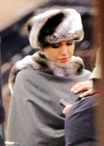 昨日,因拍攝新片《特工鹽》而暈倒的安吉麗娜·朱莉重返拍攝現(xiàn)場(chǎng)。朱莉看上去相當(dāng)虛弱,上身裹在一件皮草披風(fēng)之中,頭戴一頂帽子。