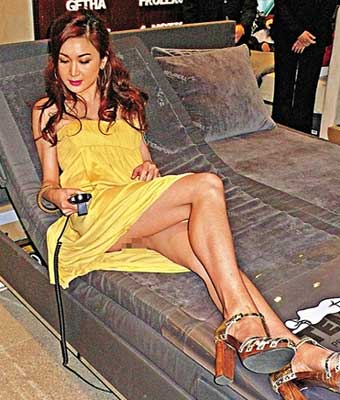中新網(wǎng)11月7日電 美國(guó)小天后Britney Spears(布蘭妮)去年被拍到?jīng)]穿內(nèi)褲成為全球一時(shí)熱話(huà);沒(méi)料到“海潮”溫碧霞也有驚人之舉,繼以41歲之齡拍攝終極噴血寫(xiě)真集后,昨日她穿招牌露肩連身短裙出席床褥宣傳活動(dòng),其間躺電動(dòng)床上扭腰大擺造型時(shí),懷疑下身真空的她不慎春光乍泄,但事后她卻堅(jiān)稱(chēng)自己有穿內(nèi)褲。