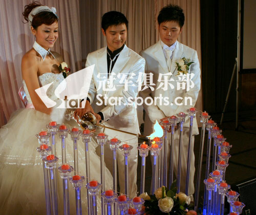 組圖:直擊田亮葉一茜婚禮 新人點燃愛的火種(4)