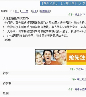 過去數(shù)日,被稱為“奇拿”的發(fā)相神秘人先后兩度以突襲式在網(wǎng)上發(fā)布逾百張從未曝光裸照,引來大批網(wǎng)民通宵留守電腦前等候最新消息。前晚,有網(wǎng)友在內(nèi)地論壇發(fā)布一條預告(見上圖),稱11日阿嬌復出時將在網(wǎng)上同步發(fā)送阿嬌與陳冠希的一段性愛片段,任由網(wǎng)友觀賞。