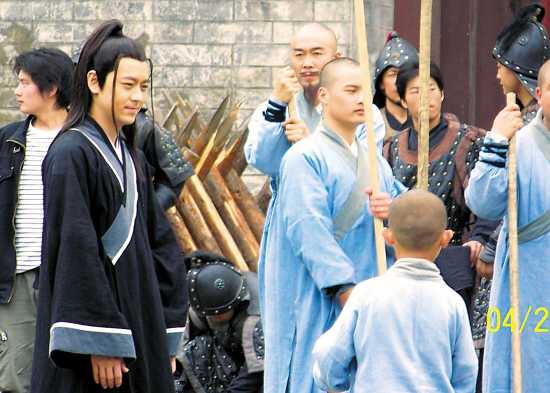 在劇里演青年皇帝的林志穎是前天下午才進(jìn)劇組的。昨天中午他拍的是與元彪率領(lǐng)的少林十八僧沖出洛陽(yáng)城門(mén)的一場(chǎng)戲。說(shuō)是一場(chǎng)戲,記者在現(xiàn)場(chǎng)看到,其實(shí)也不過(guò)是幾分鐘左右的鏡頭——從“洛陽(yáng)”城門(mén)徐徐打開(kāi),到一臉凜然的眾僧與林志穎抄著長(zhǎng)棍短棒從里沖出來(lái),然后在城門(mén)口一個(gè)亮相的定格。就這么一個(gè)場(chǎng)景,來(lái)來(lái)回回折騰了大約有一個(gè)多小時(shí):城門(mén)開(kāi)了,沖!重來(lái)!城門(mén)再開(kāi),再?zèng)_!還是不行,再跑!