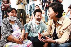 19日,舉國默哀的時(shí)刻,楊瀾緊摟著都江堰人民醫(yī)院預(yù)防保健科主任廖曉斌的肩膀。災(zāi)后僅僅兩小時(shí),廖曉斌就帶著確認(rèn)了丈夫不可能救出的巨大悲傷投入了搶救傷員的工作,而她在成都工作的女兒也是醫(yī)生,因?yàn)楣ぷ髅β,母女至今未能見面。楊瀾說,這是眾多大災(zāi)難中讓我們肅然起敬的平凡女性中的一位———失去自己至愛的親人,卻正在為別人的親人忙碌,而她所能做的是緊緊摟住她們的肩膀,傳遞心中支持的力量。