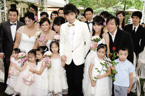 古巨基帶領(lǐng)10對新人一起走過紅毯時,也邀請了一位6歲的小女孩擔任自己的女伴。被浪漫婚禮氣氛打動的古巨基感慨地說:“一直很想結(jié)婚!很向往家的感覺,但可惜一直沒有遇到另一半的緣分!鄙磉呥@位6歲的小女伴,私底下透露說很喜歡古巨基哥哥,但是當古巨基在大家面前向她“求婚”:“我等你12年,你嫁給我好嗎?”小女孩卻害羞地多次推開古巨基的麥克風,斬釘截鐵地說:“不要!”令古巨基頗為尷尬。(記者柳治)