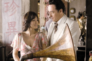 劇照中,發(fā)哥身穿風(fēng)衣,頭戴紳士帽, 活像28年前在《上海灘》中飾演的許文強。發(fā)哥無論身材與外貌,均與當年無異。至于曾在張藝謀電影《搖啊搖!搖到外婆橋》中飾演歌女的鞏俐,這次也重施故伎,以濃濃的女人味誘惑兩位男主角。而在另一張劇照中,身穿低胸長裙的她,與因合作而傳緋聞的約翰·庫薩克深情對望。(王文)