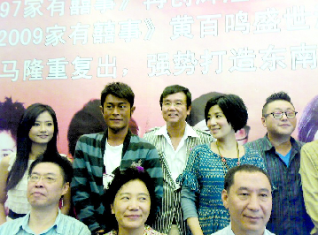 昨日下午杭州雨后天晴,如香港東方電影公司老總黃百鳴的心情,因為《家有喜事》系列電影在闊別銀幕11年之后,終于有機(jī)會制造《家有喜事2009》。昨天該片在杭州舉行了開機(jī)新聞發(fā)布會,主演吳君如、古天樂、黃百鳴、鄭中基、姚晨、郭濤等等一干明星全體出席。