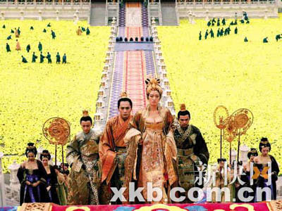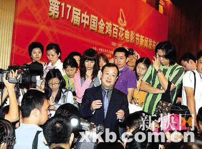昨日上午11點(diǎn),第17屆金雞百花電影節(jié)新聞發(fā)布會(huì)在大連的富麗華酒店如期舉行,來(lái)自全國(guó)各地的百余家媒體記者們都齊聚一堂,聽(tīng)電影節(jié)組委會(huì)關(guān)于提名影片規(guī)則方面的老調(diào)重彈。正當(dāng)大家都有點(diǎn)昏昏欲睡的時(shí)候,一位來(lái)自吉林某電視臺(tái)的記者突然提出了一個(gè)問(wèn)題:“為什么讓大眾評(píng)委觀摩的影片由最初決定的10部變成了9部,獨(dú)獨(dú)缺了《滿(mǎn)城盡帶黃金甲》(以下簡(jiǎn)稱(chēng)《黃金甲》)?”臺(tái)下的記者們聞言頓時(shí)議論紛紛,而臺(tái)上的電影節(jié)領(lǐng)導(dǎo)們也都表現(xiàn)得十分意外,由此引發(fā)了電影節(jié)開(kāi)幕最大的話(huà)題——《黃金甲》為何退賽了?