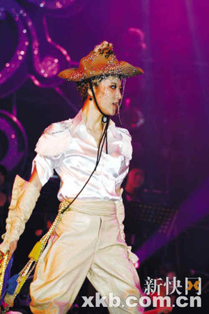 閃亮牛仔裝造型,以絲感覺(jué)面料為中性造型增添女人味。閃亮牛仔帽,復(fù)古袖子,飄逸馬褲,流蘇腰帶以及褶皺長(zhǎng)手套,都是這個(gè)造型值得細(xì)細(xì)品味的潮流細(xì)節(jié)。