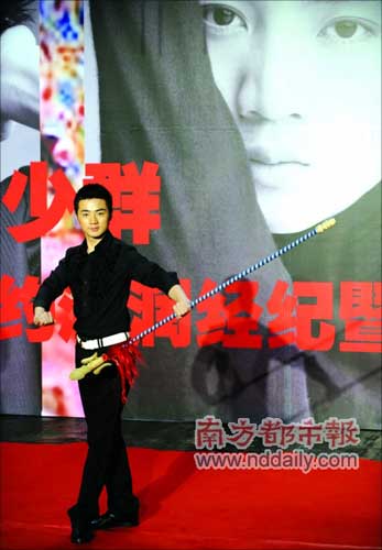而總裁常繼紅則為剛“進門”的余少群送上了超大厚禮,她現(xiàn)場宣布,海潤的大老板從國外打來電話,宣布余少群將成為海潤明年的“反武俠”戲《蓋世匹夫》的男一號,而另一部中日合拍的年代戲也將由余少群主演,同時還在為他談幾部戲。常繼紅承認自己是在《梅蘭芳》中發(fā)現(xiàn)了余少群,她也表示要力捧余少群成為大明星,“前有劉燁,后面就看余少群的了!”