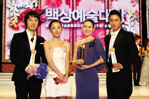 2月27日晚8時,韓國第45屆百想藝術(shù)大賞在首爾奧林匹克公園舉行。電影類獎項方面,朱鎮(zhèn)模憑《霜花店》奪最佳男主角獎,孫藝珍憑《妻子結(jié)婚了》當(dāng)選最佳女主角,姜禹錫導(dǎo)演的《姜哲中:公共之?dāng)?-1》獲電影大獎;電視劇類獎項方面,金明敏憑《貝多芬病毒》獲最佳男演員獎,文根英憑《風(fēng)之畫院》獲最佳女演員獎,《媽媽長角了》獲電視類最佳作品獎和電視類大獎。去年的收視熱門劇《ON AIR》只由申宇哲獲得一個電視類最佳導(dǎo)演獎。電影類導(dǎo)演獎則由《精彩的一天》的李允基獲得。
